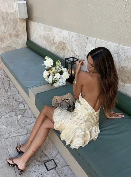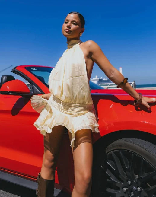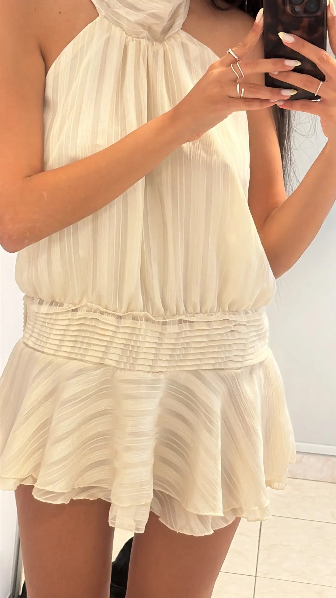 The Willow Chiffon Mini Dress features a bold boat cut neckline and an asymmetrical waistline, creating a flattering and dynamic silhouette. Made from lightweight chiffon, this dress exudes effortless elegance and movement, making it perfect for an evening out or a special occasion.